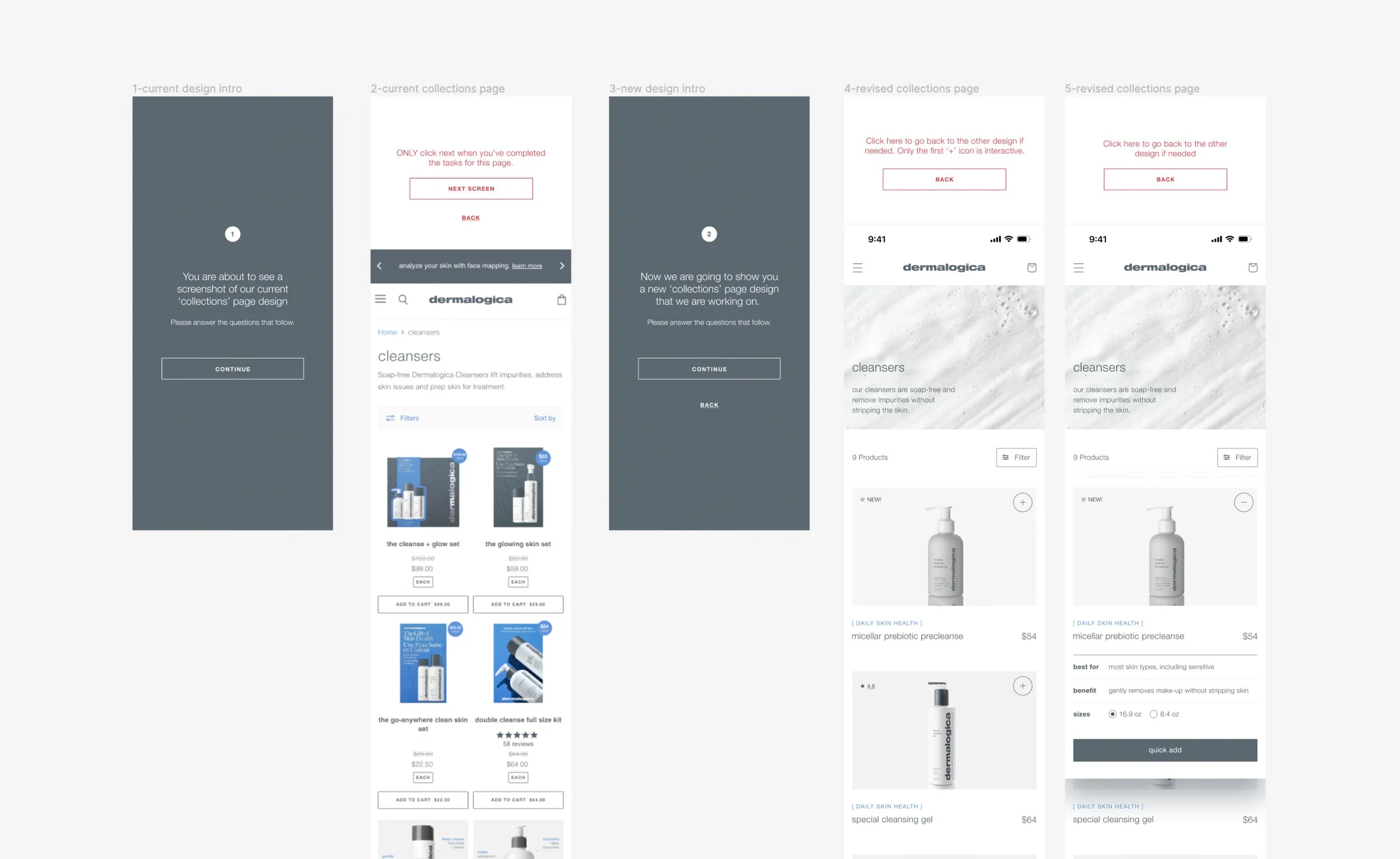 Multiple iterations were tested with a panel of 20 users. Their feedback on usability, navigation, and aesthetics was crucial in refining the final designs. User feedback helped identify and resolve potential pain points, leading to a more seamless and enjoyable browsing experience. This iterative process ensured that the final design not only met but exceeded user expectations, aligning with Dermalogica's commitment to excellence.